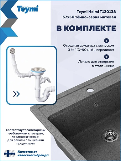Teymi Мойка кухонная Helmi 60 темно-серая