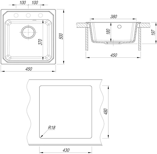 - Размер чаши (ШxГxВ): 380 х 370 х 180 мм.