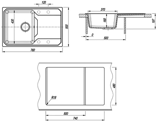 - Установочный проём (ШxГ): 740 x 480 мм.