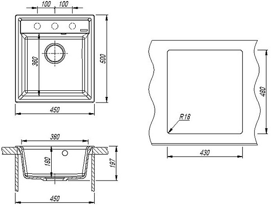 - Размер чаши (ШxГxВ): 380 х 360 х 180 мм.