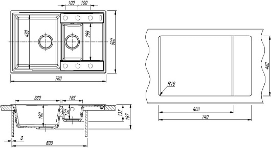 - Размер дополнительной чаши (ШxГxВ): 165 х 298 х 120 мм.