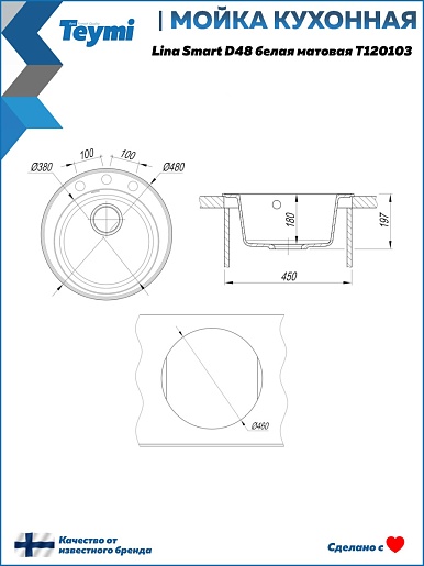Мойка кухонная Teymi Lina Smart D48 белая - арт. T120103.