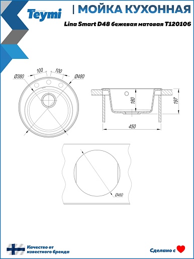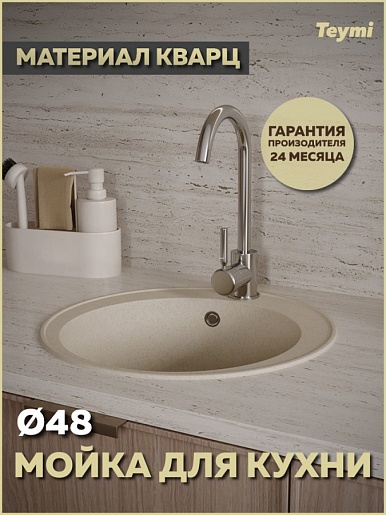 Мойка кухонная Teymi Lina Smart D48 бежевая - арт. T120106.