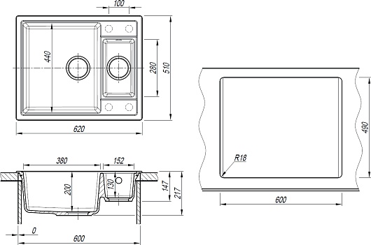- Размер дополнительной чаши (ШxГxВ): 152 х 280 х 147 мм.