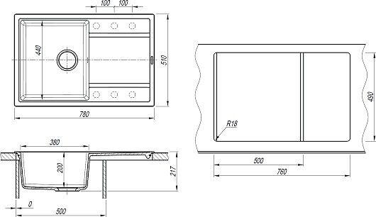 - Установочный проём (ШxГ): 760 x 490 мм.