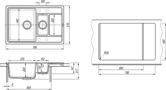 - Размер дополнительной чаши (ШxГxВ): 152 х 280 х 130 мм.