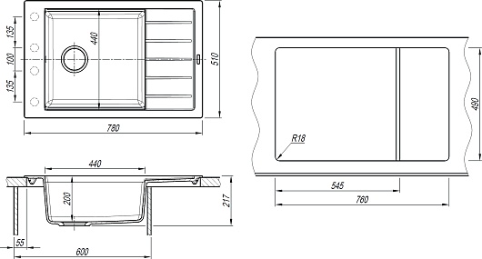- Размер чаши (ШxГxВ): 440 х 440 х 200 мм.