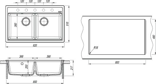 - Размер чаш (ШxГxВ): 368 х 360 х 200 мм.
