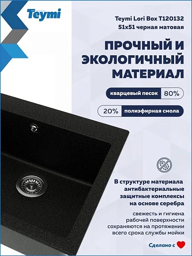 Teymi Мойка кухонная Lori Box 51 матовая черная