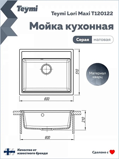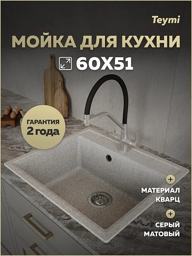 Teymi Мойка кухонная Lori Maxi 60 матовая серая