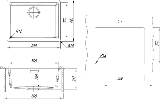 - Размер чаши (ШxГxВ): 500 х 370 х 200 мм.