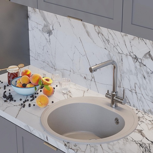 - Мойка из искусственного мрамора: прочная, бесшумная и гигиеничная, легко ремонтируется, устойчива к высоким температурам, проста в уходе, производится в разных оттенках.
