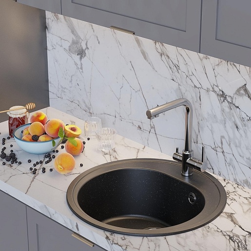 - Мойка из искусственного мрамора: прочная, бесшумная и гигиеничная, легко ремонтируется, устойчива к высоким температурам, проста в уходе, производится в разных оттенках.