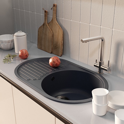 - Мойка из искусственного мрамора: прочная, бесшумная и гигиеничная, легко ремонтируется, устойчива к высоким температурам, проста в уходе, производится в разных оттенках.