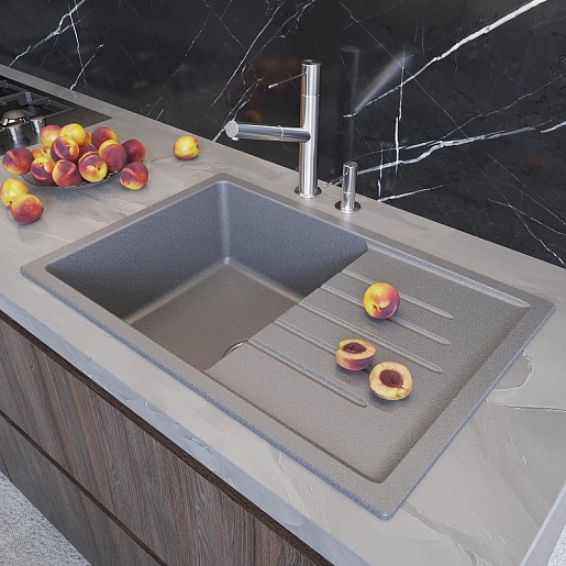 - Мойка из искусственного мрамора: прочная, бесшумная и гигиеничная, легко ремонтируется, устойчива к высоким температурам, проста в уходе, производится в разных оттенках.