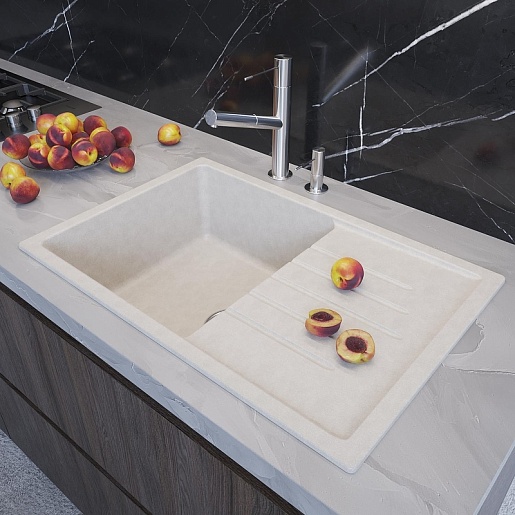 - Мойка из искусственного мрамора: прочная, бесшумная и гигиеничная, легко ремонтируется, устойчива к высоким температурам, проста в уходе, производится в разных оттенках.