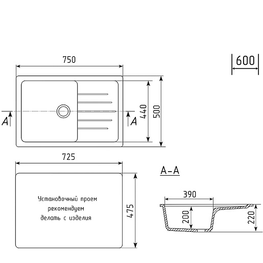 - Мин. ширина шкафа для монтажа мойки: 60 см.