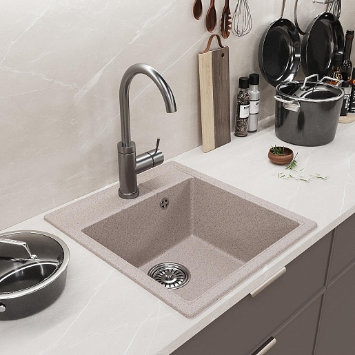 - Мойка из искусственного мрамора: прочная, бесшумная и гигиеничная, легко ремонтируется, устойчива к высоким температурам, проста в уходе, производится в разных оттенках.