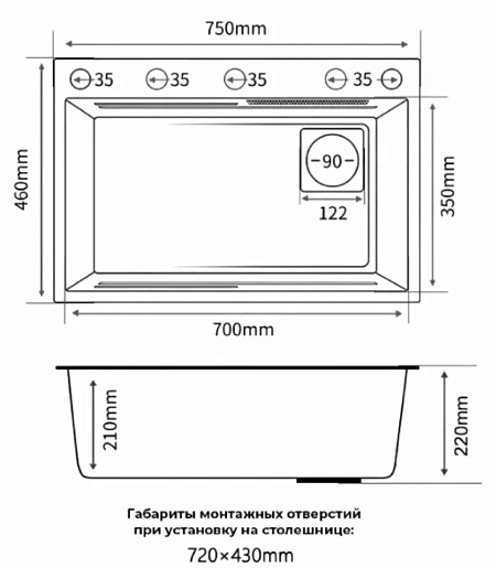 - Мин. ширина шкафа для монтажа мойки: 80 см.