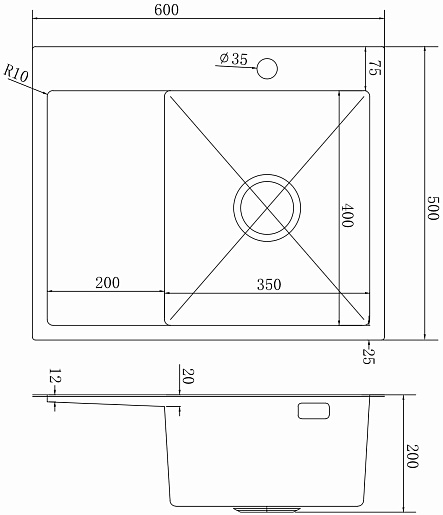 - Монтаж: встраиваемая сверху (врезная).