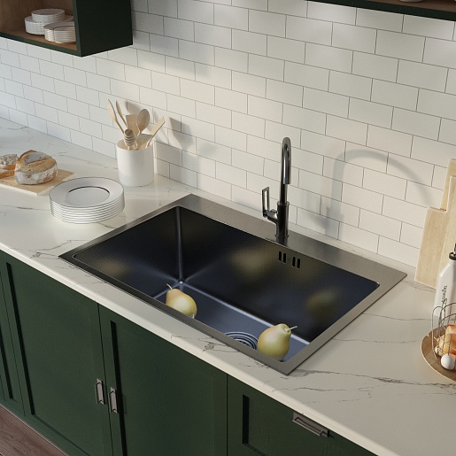 Mixline Мойка кухонная Pro 65 черный графит с декором Нано