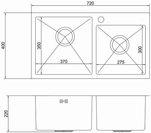 - Размер чаш (ШxДxВ): 370х350х220, 275x300x220 мм.