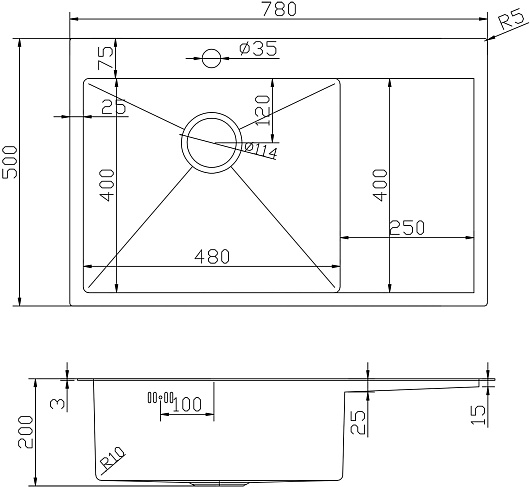 - Размер чаши (ШxДxВ): 480х400х200 мм.
