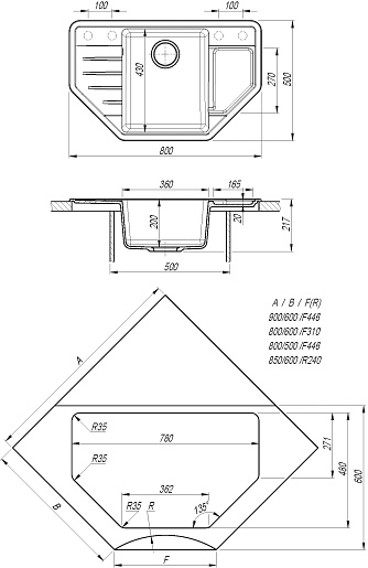 Мойка кухонная угловая Dr. Gans Рио 800 везувий - арт. 25.080.C0800.410.