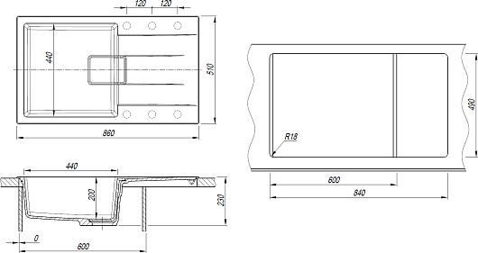 - Размер чаши (ШxГxВ): 440 х 440 х 200 мм.