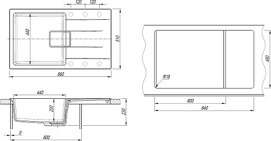 - Размер чаши (ШxГxВ): 440 х 440 х 200 мм.