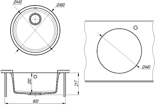 - Размер чаши (ШxГxВ): 440 х 440 х 200 мм.