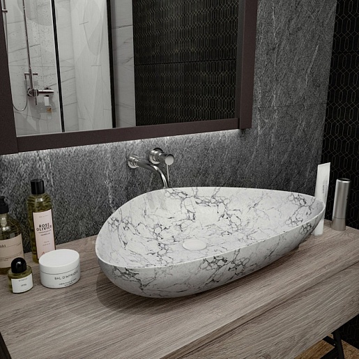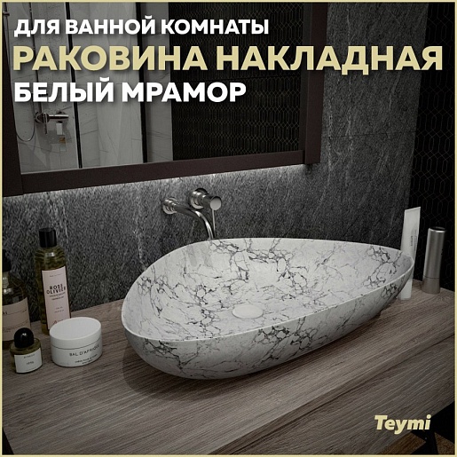 - Раковина накладная в ванную Teymi Ellie 60 цвет белый мрамор T50598.- Устанавливается на столешницу.