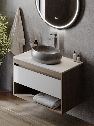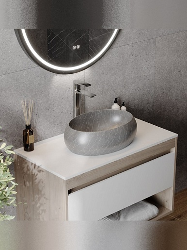 - Накладная раковина Teymi Laina 48 мрамор серый матовый.- Устанавливается на столешницу.