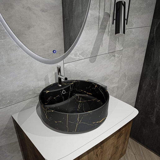 - Раковина накладная круглая в ванную Teymi Lina S D40 цвет черный мрамор T50194.- Устанавливается на столешницу.