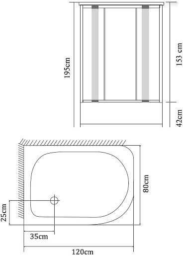 - высота поддона 42 см., глубина 29 см.