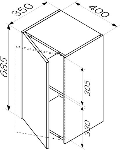 - 1 распашная дверка, 3 внутренние полки.