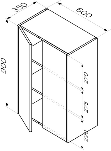 - 2 распашные дверки, 3 внутренние полки.