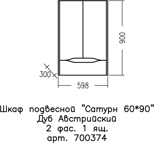 - Размер (ШxВxГ): 600x900x300 мм.