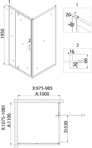 Боковая стенка Niagara Nova 100x195 NG-A100B.