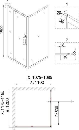 Боковая стенка Niagara Nova 110x190 NG-A110G.