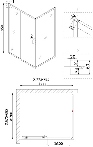 Боковая стенка Niagara Nova 70x195 NG-A70.