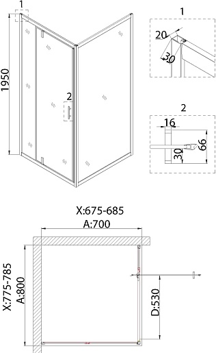 Душевая дверь в нишу Niagara Nova 80x195 NG-63-8A.