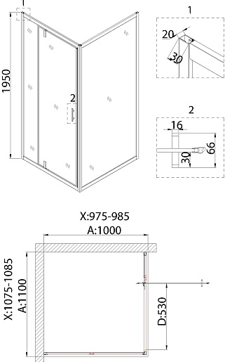 Душевая дверь в нишу Niagara Nova 110x195 NG-83-11AB.