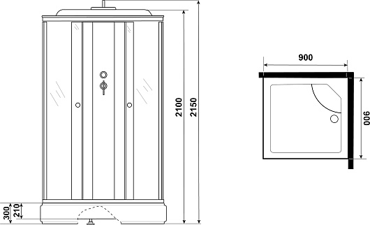 • Размер (ШxГxВ): 90x90x215 см.