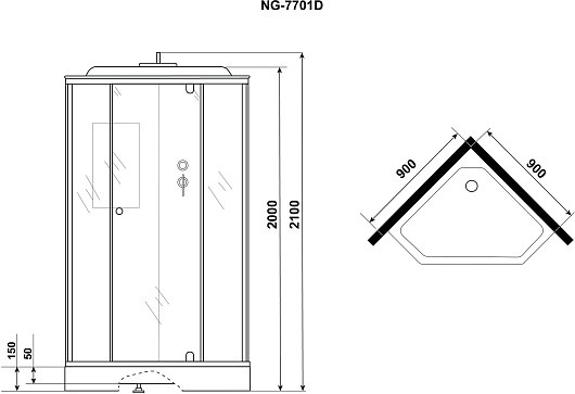 - Размер (ШxГxВ): 90x90x210 см.