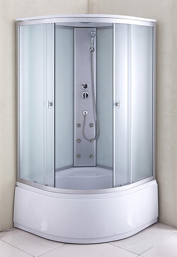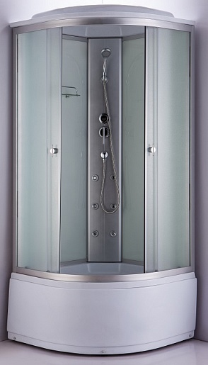 Внутри кабины установлен душ, работающий в четырёх различных режимах. Специальное крепление позволяет с лёгкостью разместить лейку в необходимом положении. Также предусмотрены тропический душ и шеститочечный гидромассаж. Установлена полочка с ограничителями.