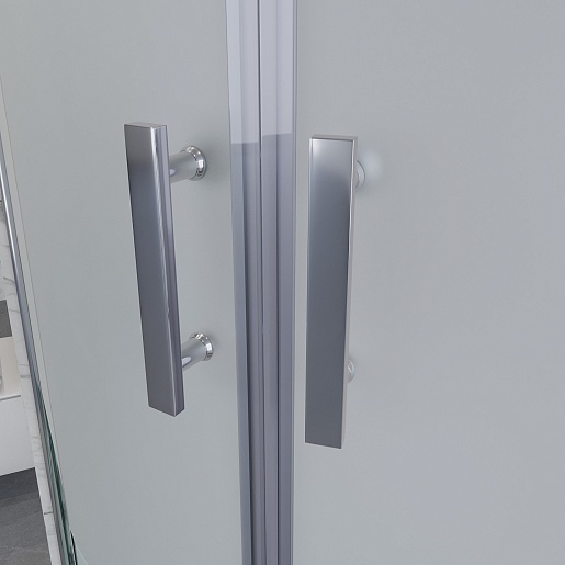 - Исполнение полотна двери: закаленное стекло, прозрачное с матовой полосой.
