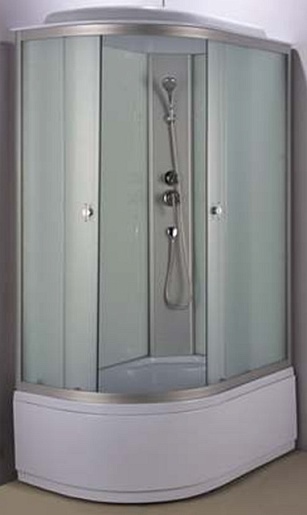 Сантехника оснащена высоким поддоном ассиметричной формы 40 см. Такая глубина обеспечивает хороший прогрев внутреннего пространства и дает возможность набрать небольшое количество воды в душ. В кабине предусмотрен режим тропического душа, а также двухрежимный смеситель.