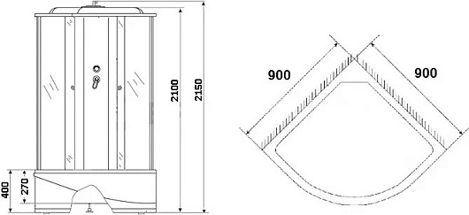 NG-8308-14 – душевая кабина от отечественного производителя Niagara, выполненная в классическом белом цвете. Имеет форму полукруга, за счёт чего легко впишется в ванную комнату любой площади. При ширине и длине кабины в 90 сантиметров обладает высотой 2,2 метра. Устанавливается на ножки с возможностью регулировки.
