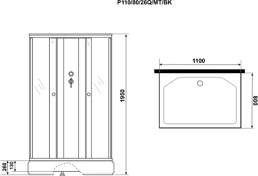 Niagara Душевая кабина Promo P110/80/26Q/MT/BK